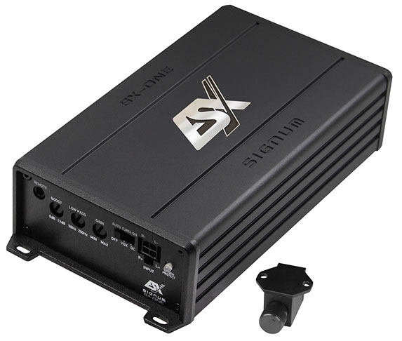 With the SIGNUM SX Mini series, ESX expands its extensive car audio portfolio with four brand-new MINI Class-D amplifiers that set new standards with their minimal dimensions, outstanding sound, and surprisingly high power output of up to 600 watts RMS. These compact powerhouses utilize state-of-the-art Class D technology, which, thanks to its high efficiency, enables low heat generation, thus making the exceptionally space-saving design—only 83 mm wide and 38 mm high—possible. This makes the mini amplifiers ideal for discreet installations, whether under the seat, in the side panel, or in the trunk. A particularly practical feature: The SX-FIVE, SX-TWO, and SX-ONE models come with a bass level remote control. This allows for convenient bass adjustment from the driver's seat at any time—perfect for those who value flexibility and maximum control in everyday driving.